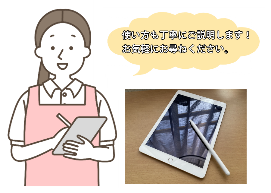 また、聴覚に障がいのある方ともコミュニケーションがとりやすいよう、筆談用にタブレットを用意しています。