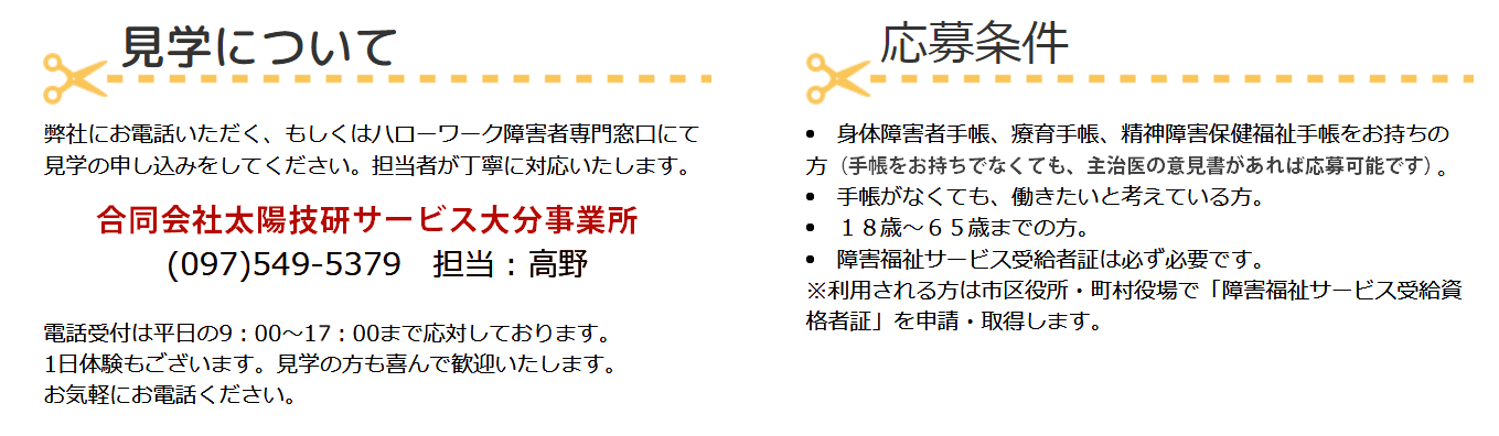 ⑦毎日4時間以上、週5日もしくは6日の勤務が行える方ご自身に合った働き方を選んで、無理のない通所をおすすめしています。